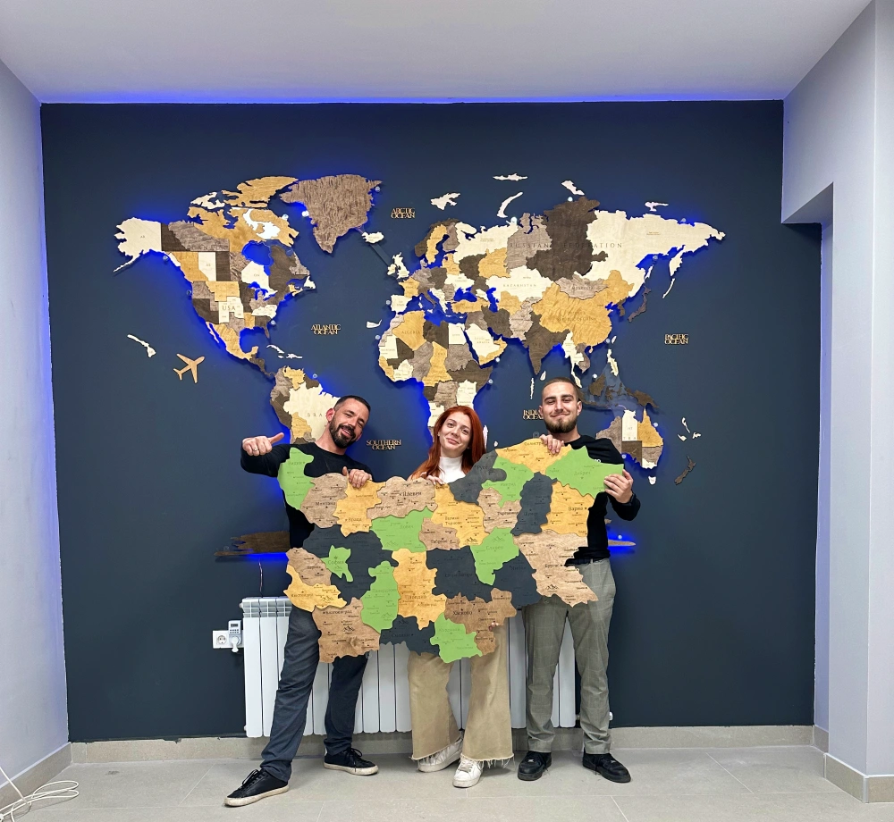Iluminarea RGB LED a hărții noastre 3D este concepută pentru a oferi confort maxim și flexibilitate. Benzile de LED-uri RGB de înaltă calitate sunt integrate în spatele hărții, creând un efect spectaculos și uniform de aură luminos care adaugă profunzime și accent atât hărții cât și peretelui. Iluminarea poate fi controlată în trei moduri principale: printr-o telecomandă, o aplicație mobilă specială sau chiar prin comenzi vocale, dacă este integrată cu Amazon Alexa.