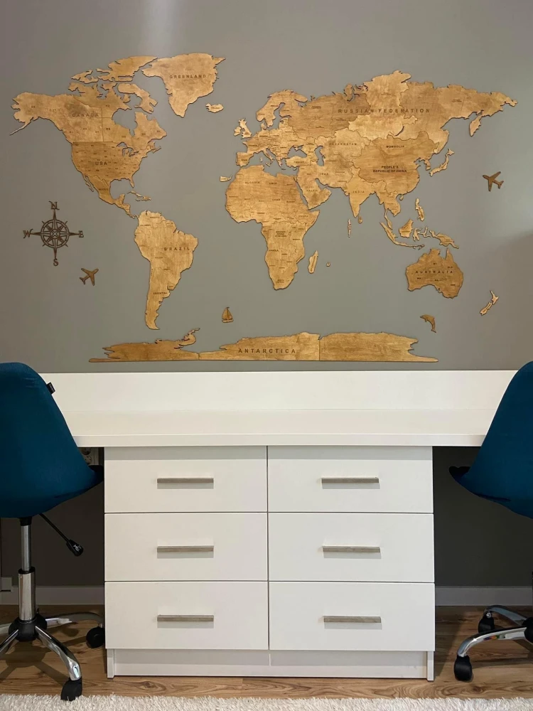 *Fotografia este de la un client care a ales harta noastră a lumii pentru camera copilului.