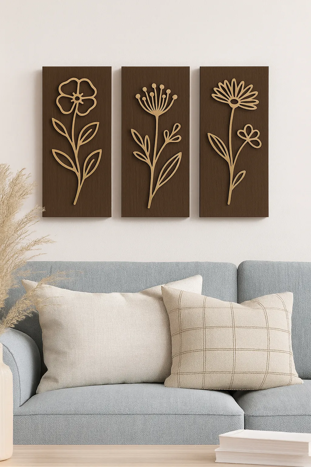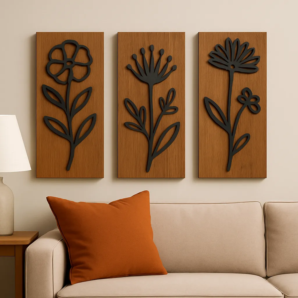 Cele trei panouri cu motive florale delicate creează o senzație de calm și rafinament – o alegere ideală pentru cei care apreciază detaliul.