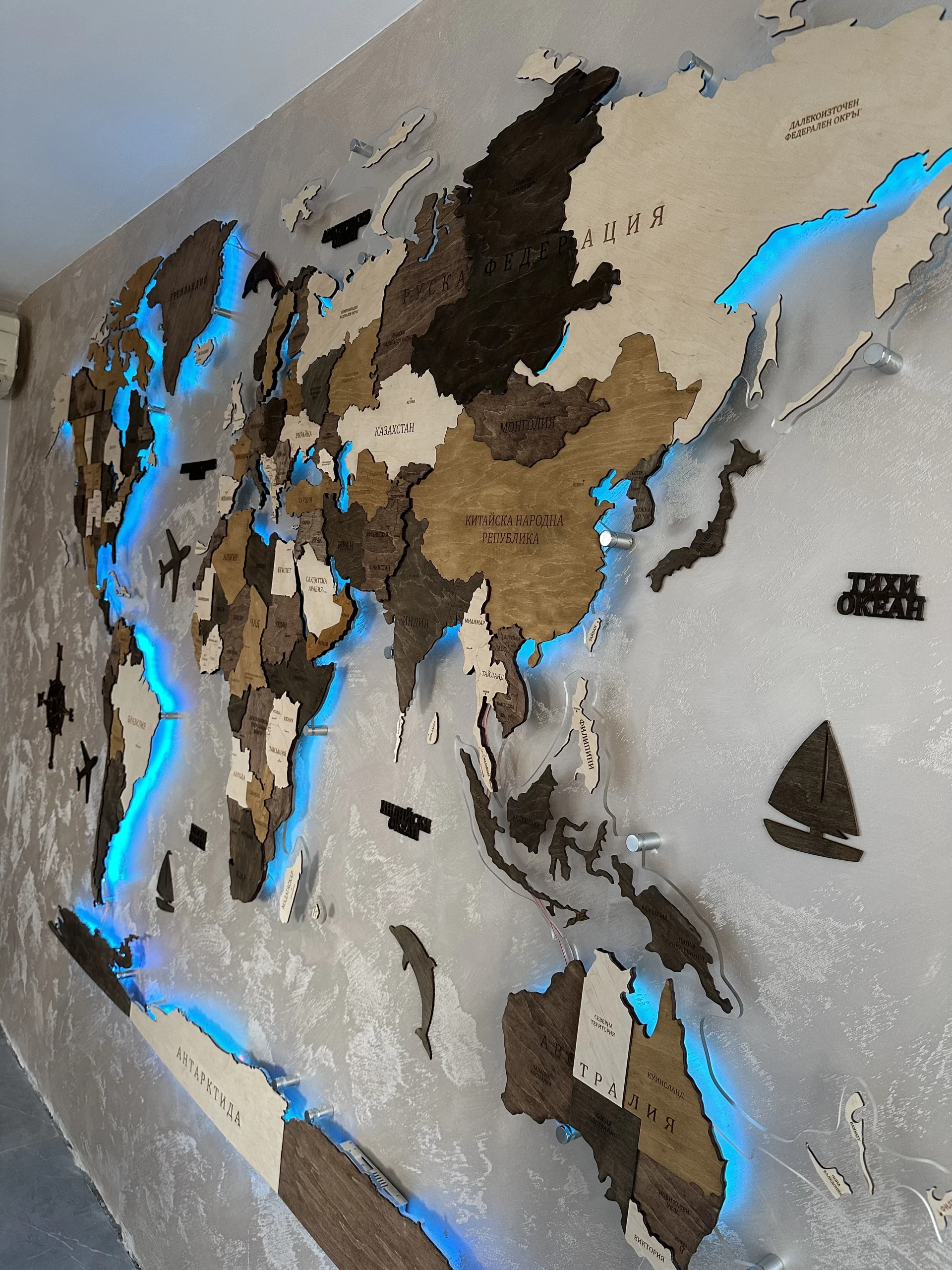 Explorați lumea din confortul propriei case sau al biroului cu harta noastră 3D din lemn a lumii!
