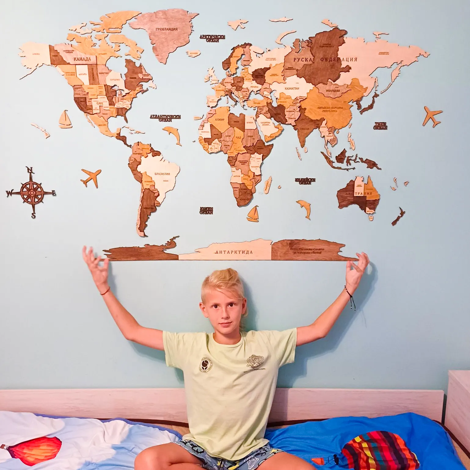 Explorați lumea din confortul propriei case sau al biroului cu harta noastră 3D din lemn a lumii!
