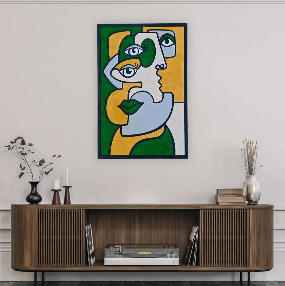 Aduceți un aer artistic în interiorul dumneavoastră cu panoul nostru realizat manual Timeless, inspirat de cubism și de opera marelui Picasso. Acest panou 3D din lemn combină forma, culoarea și profunzimea pentru a deveni un accent impresionant pe orice perete.
